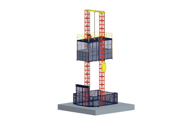 該機可以做到一機多用,是運送鋼筋、混凝土及施工人員的三合一型設備,廣泛應用于電力建設中的煙囪和冷卻塔施工。