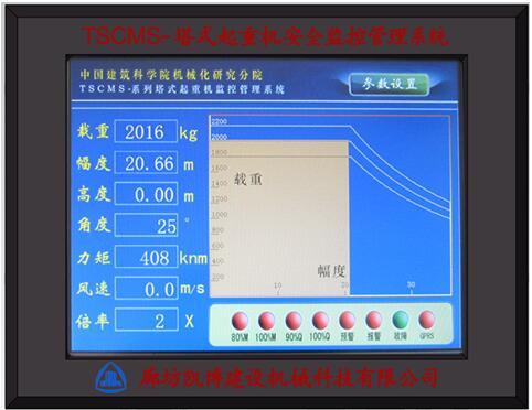 主要功能:1.實時顯示:以圖形和數值實時顯示當前工作參數,包括起重量、力矩、幅度、回轉角度及起升高度(圖形為塔機額定起重特性曲線)