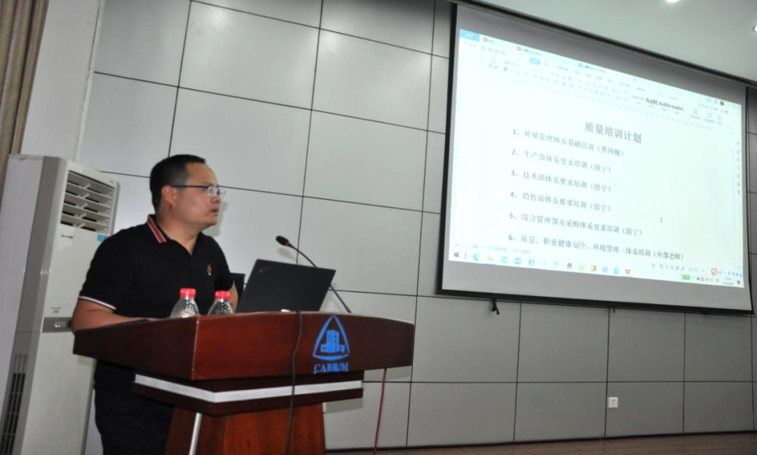 ??2022年6月9日,北京建筑機械化研究院有限公司凱博繼續教育中心(凱博技校)第十課“質量管理體系基礎”在廊坊開發區生產基地開講,由廊坊凱博建設機械科技有限公司物資質量部部長曹國巍主講,各事業部、部門相關負責人及體系相關人員參加培訓。本次培訓主要從質量發展、質量管理、質量成本和質量意識四個方面出發,展開分析,環環相扣,指出了實施質量管理的潛在收益。